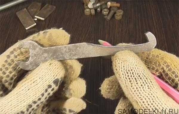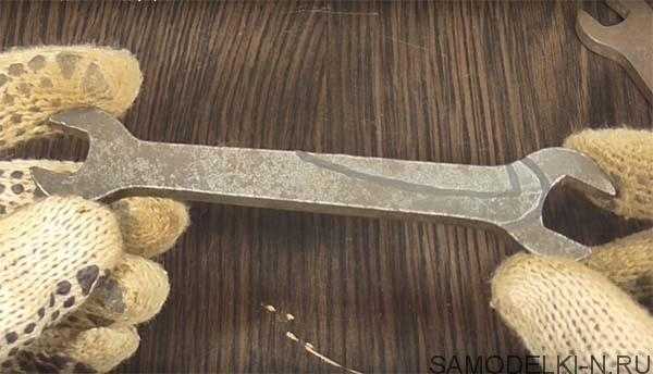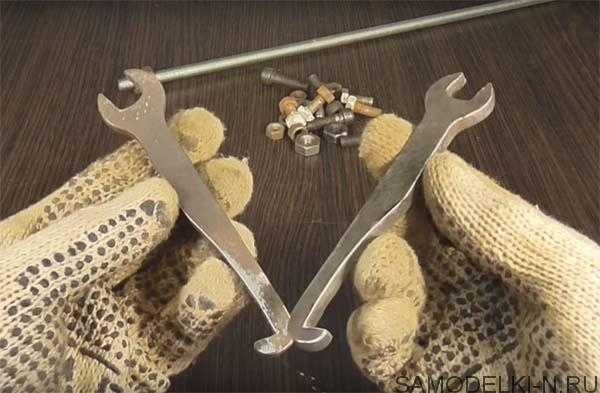 Весь процесс изготовления самоделки подробно показан на этих фото. Из гаечных ключей нужно сделать вот такие заготовки.