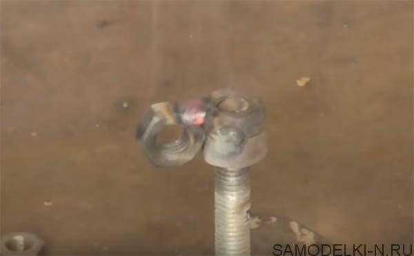Затем накрутив на шпильку две гайки сварит их вместе.