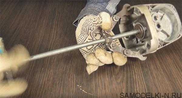 Для того, чтобы снять внутренний подшипник, Автор перевернул ключи и поставил шпильку по длиннее. Продев шпильку в подшипник накрутил на неё гайку.