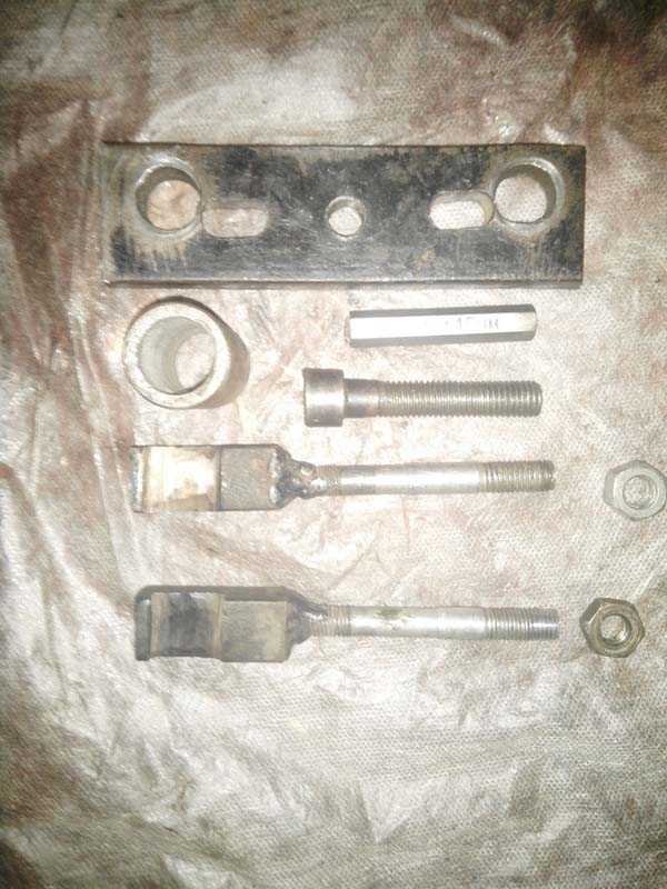 Также понадобилась шпилька длиной 320 мм к ней приварили гайку. Так же запрессовал шарик от подшипника в центр шпильки.