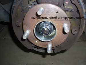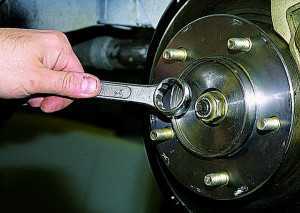 Далее отсоединяем гайку полуоси, затем необходимо отсоединить наконечник рулевой тяги, нижний рычаг и потом стабилизатор передач. Теперь следует снять ступицу очень осторожно: раскачивайте кулак, а также внимательно следите за полуосью, она не должна выскочить из коробки передач.