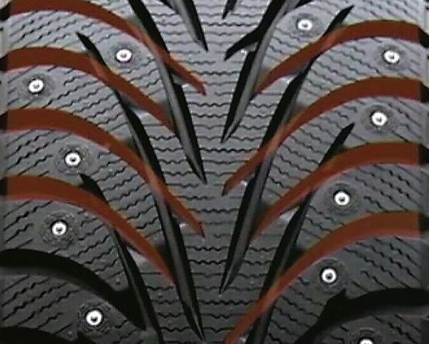 — Шипованная резина очень хорошо действует на скользкой обледенелой дороге, когда сцепление колёс с дорожным покрытием падает.