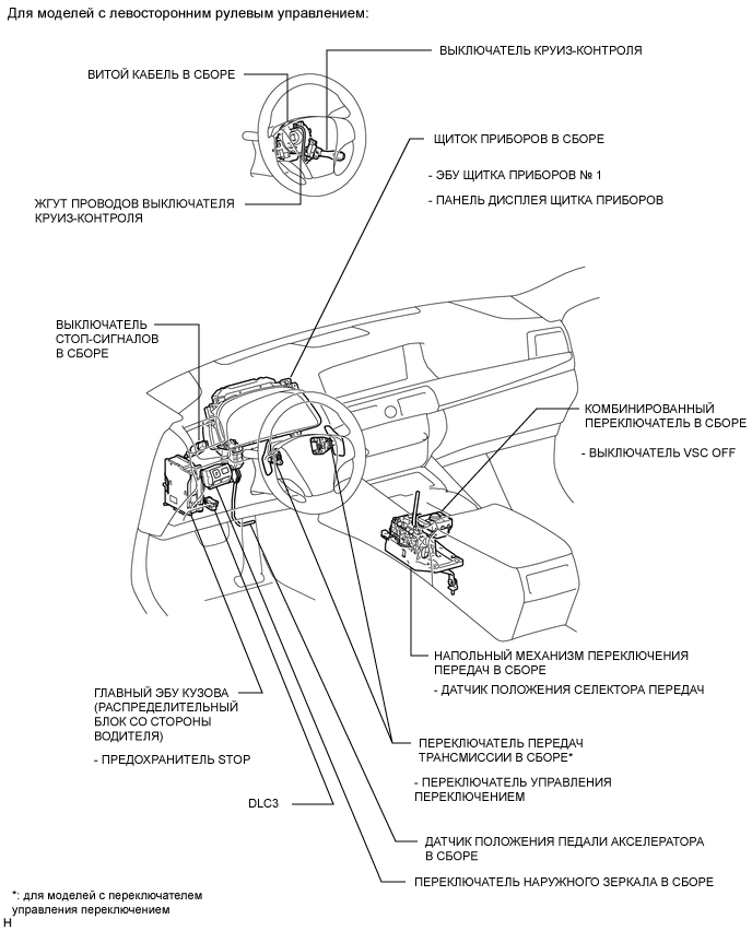 Ниже перечислены основные компоненты типовой системы круиз-контроля.