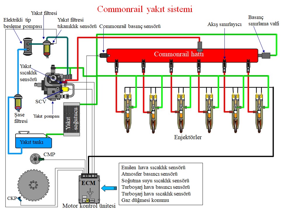 Π‘ΠΈΡΡΠ΅ΠΌΠ° Common Rail Π²ΠΊΠ»ΡΡΠ°Π΅Ρ ΡΠΎΠΏΠ»ΠΈΠ²Π½ΡΠΉ Π½Π°ΡΠΎΡ Π²ΡΡΠΎΠΊΠΎΠ³ΠΎ Π΄Π°Π²Π»Π΅Π½ΠΈΡ, ΠΊΠ»Π°ΠΏΠ°Π½ Π΄ΠΎΠ·ΠΈΡΠΎΠ²Π°Π½ΠΈΡ ΡΠΎΠΏΠ»ΠΈΠ²Π°, ΡΠ΅Π³ΡΠ»ΡΡΠΎΡ Π΄Π°Π²Π»Π΅Π½ΠΈΡ ΡΠΎΠΏΠ»ΠΈΠ²Π° (ΠΊΠΎΠ½ΡΡΠΎΠ»ΡΠ½ΡΠΉ ΠΊΠ»Π°ΠΏΠ°Π½), ΡΠΎΠΏΠ»ΠΈΠ²Π½ΡΡ ΡΠ°ΠΌΠΏΡ ΠΈ ΡΠΎΡΡΡΠ½ΠΊΠΈ. ΠΡΠ΅ ΡΠ»Π΅ΠΌΠ΅Π½ΡΡ ΠΎΠ±ΡΠ΅Π΄ΠΈΠ½ΡΡΡ ΡΠΎΠΏΠ»ΠΈΠ²ΠΎΠΏΡΠΎΠ²ΠΎΠ΄Ρ.
