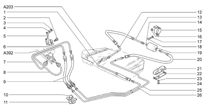 Неисправность в трубах и шлангах или в их соединениях представляет потенциальную опасность возгорания, поэтому систему необходимо проверять каждый год. Отсоедините аккумулятор в качестве меры предосторожности против любых возможных искр. Поддомкратьте автомобиль и помогите ему встать на подставки. Внимательно осмотрите трубу по всей ее длине. Особенно внимательно осмотрите стыки, проверяя наличие темных пятен, указывающих на утечку.