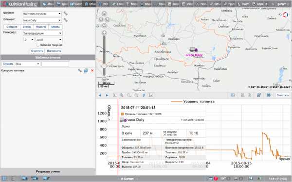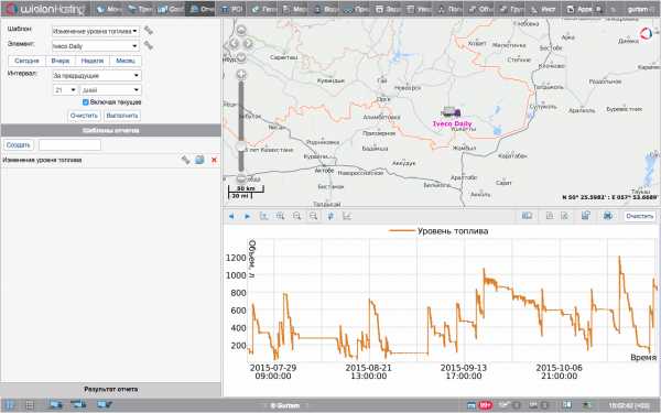 В системе Wialon диспетчер предприятия может оперативно просмотреть историю изменения уровня топлива в баке автомобиля за любой выбранный период в виде наглядного графика.
