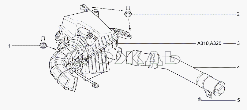 Обычно представляет собой гофрированный патрубок. В гофре имеется отдельный патрубок, через который во впускной коллектор попадают картерные газы. К патрубку присоединяется ДМРВ, крепится хомутами с двух сторон во избежание подсоса неучтенного воздуха.