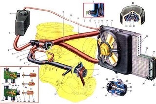 Можно выделить основные элементы системы охлаждения современного транспортного средства:
