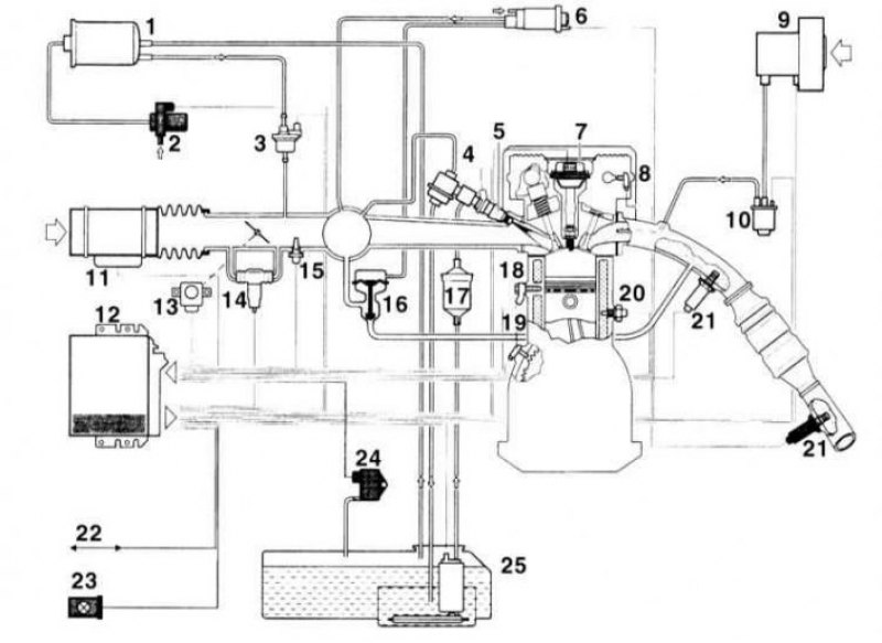 В случае с системой впрыска топлива Ваш двигатель все ещё сосёт, но вместо того, чтобы полагаться только на всасываемое количество топлива, система впрыска топлива стреляет точно правильное количество топлива в камеру сгорания. Системы впрыска топлива прошли уже несколько ступеней эволюции, в них была добавлена электроника — это, пожалуй, было самым большим шагом в развитии этой системы. Но идея таких систем осталась та же: электрически активируемый клапан (инжектор) распыляет отмеренное количество топлива в двигатель. На самом деле основное различие между карбюратором и инжектором именно в электронном управлении ЭБУ — именно бортовой компьютер подаёт точно нужное количество топлива в камеру сгорания двигателя.