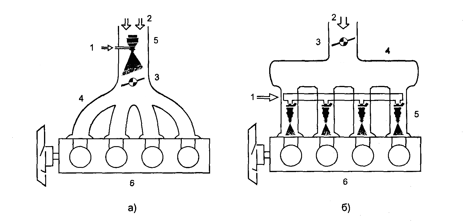 В зависимости от способа образования топливно-воздушной смеси различают следующие системы впрыска бензиновых двигателей: