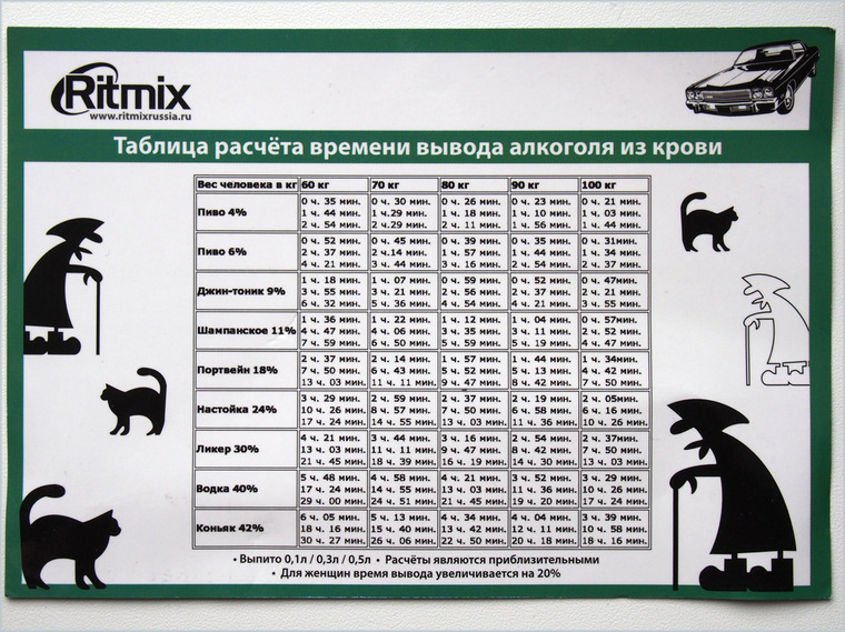 Время выведения алкоголя из организма, таблица сколько выветривается алкоголь