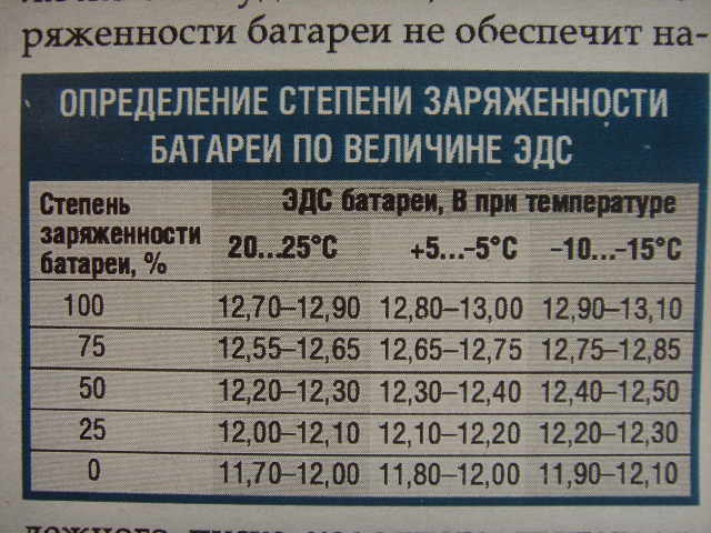 Чтобы не упустить момент, когда заряд батареи упадет до предельно критического уровня, используйте таблицу заряда АКБ.