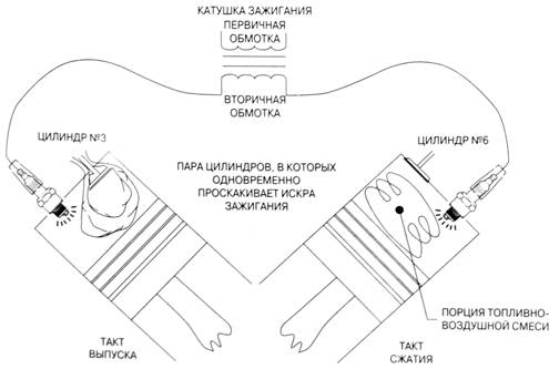 А теперь рассмотрим любопытную ситуацию: искра на свечах есть, топливо в цилиндры исправно подается, а мотор отчего-то не заводится! Это беда, в основном, начинающих «ремонтников»: если для чего-либо снимали клапанную крышку и отсоединяли от катушек провода, то почему бы при сборке не поразвлечься, перепутав их местами! Когда сигнал контроллера, адресованный катушке первого и четвертого цилиндров, приходит на катушку второго и третьего, мотор работать не может.