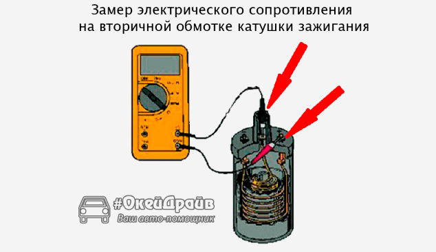 Если прибор не показывает сопротивление одной из обмоток. Значит катушка зажигания, не исправна. Меняется на новую.