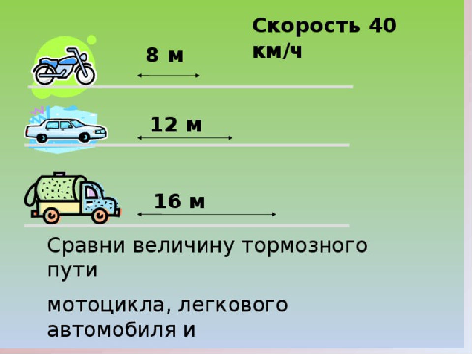 - Когда вы удваиваете скорость, для остановки вашего автомобиля требуется в четыре раза больше расстояния.