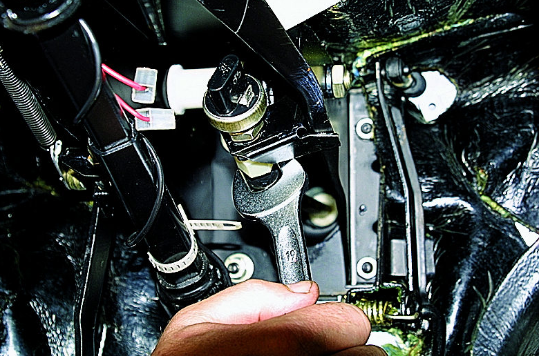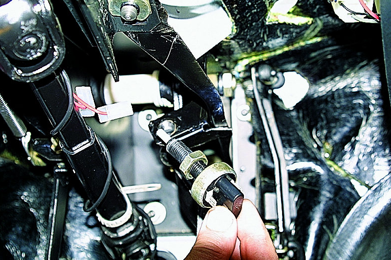 Для этого в салоне ключом «на 19» ослабляем контргайку выключателя стоп-сигнала, придерживая его ключом «на 14».