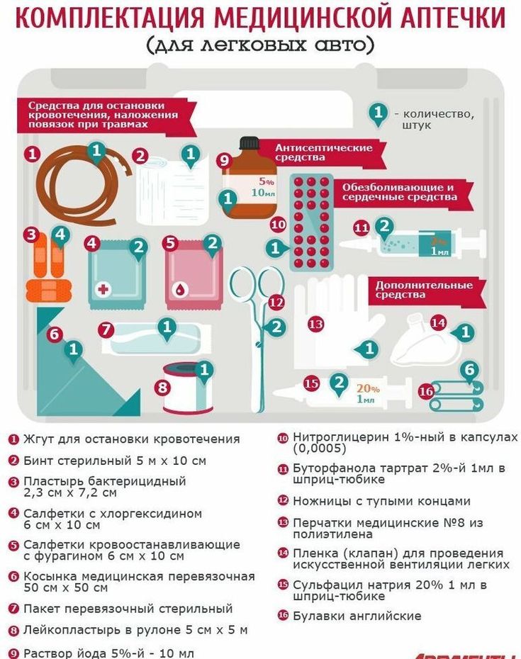 Состав автомобильной аптечки, а также лекарственные средства по вашему усмотрению помогут вам сохранить ваше здоровье и здоровье ваших пассажиров.