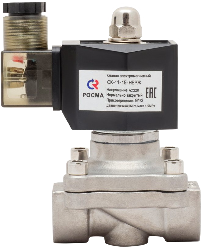 Соленоидный клапан прямого действия служит для регулирования потока жидкостей. Нет ограничений по минимальному давлению.
