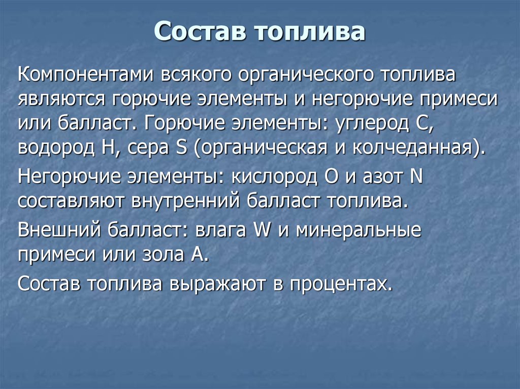 - Содержание серы — мера содержания серы, остающейся в топливе