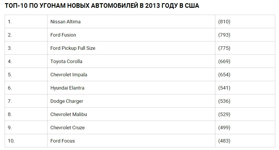 Новые модели машин выходят нечасто, и предпочтения злоумышленников меняются постепенно, поэтому список самых угоняемых автомобилей образца 2016 года может помочь понять тенденцию 2018 года или даже 2019 года.