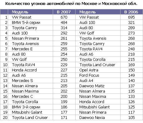 Самые угоняемые машины в Москве и России за 2019 год – список по моделям и рейтинг угонов