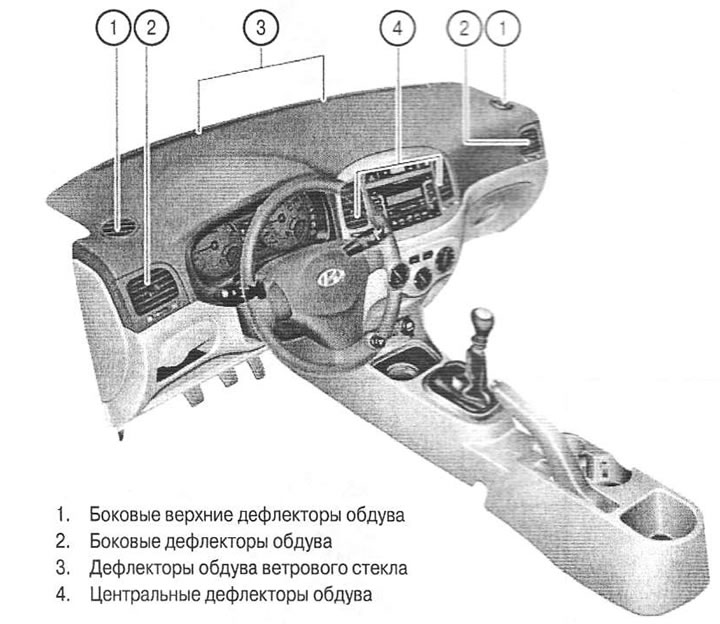 - Устранить запотевание стекла, изменяя направление воздушных потоков посредством регулирующих заслонок. Движение автомобиля обычно начинают через четверть часа, когда температура достигает оптимального значения.
