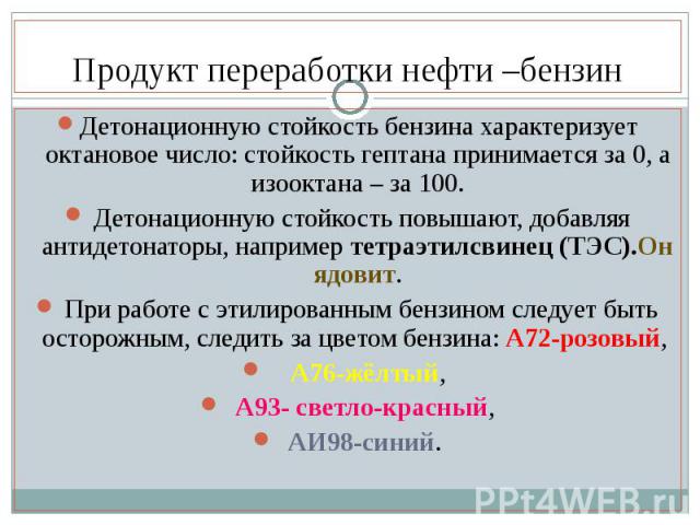 Повышение детонационной стойкости бензина. Повышать ОЧ бензина можно несколькими способами.
