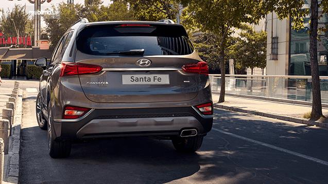 Корма Гранд Санта Фе может похвастаться наличием стильного козырька, большой задней дверцы и мощного бампера. В целом, экстерьер кроссовера выглядит очень прогрессивным и современным.