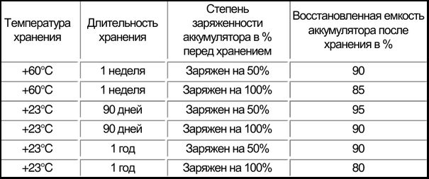 - Аккумуляторы необходимо заряжать до и во время хранения.