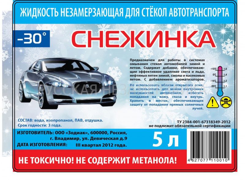 Каждая компания разрабатывает собственный состав жидкости для омывания стекол. Основные компоненты делятся на пять групп: