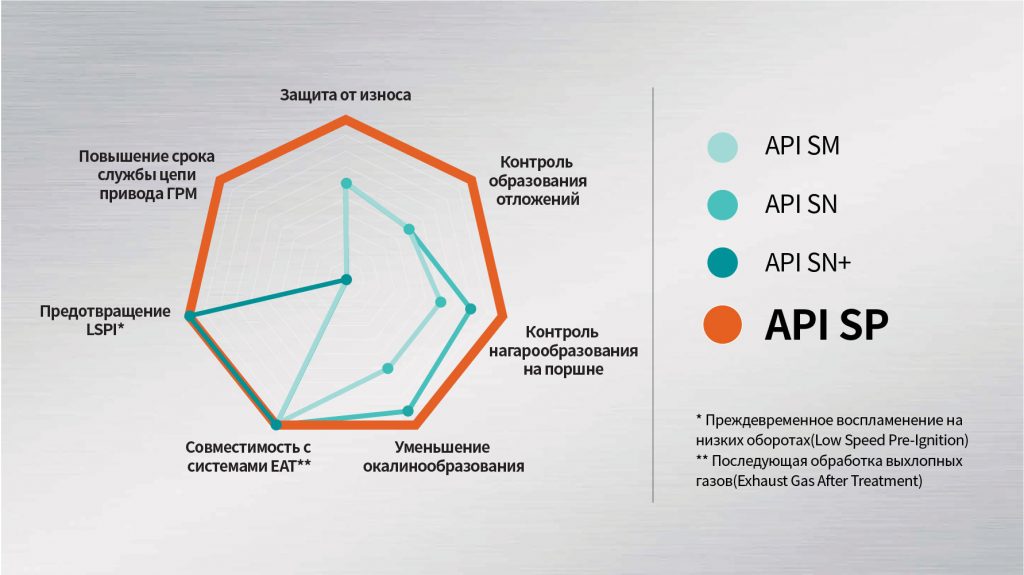 | SM | Для двигателей до 2010 года. Улучшены общие свойства для максимально-расширенного интервала замены масла. Ужесточен тест на высокотемпературные отложения (TEOST), новый тест на окисление (Seq. IIIG). |
