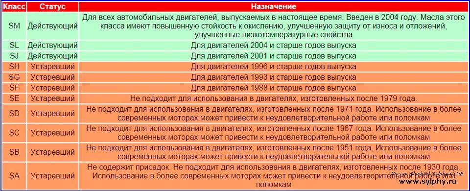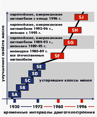Устаревшие классы масел по для бензиновых моторов: