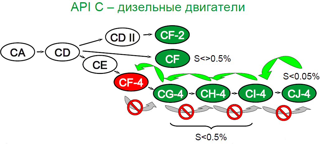 Классификация API для дизельных двигателей.