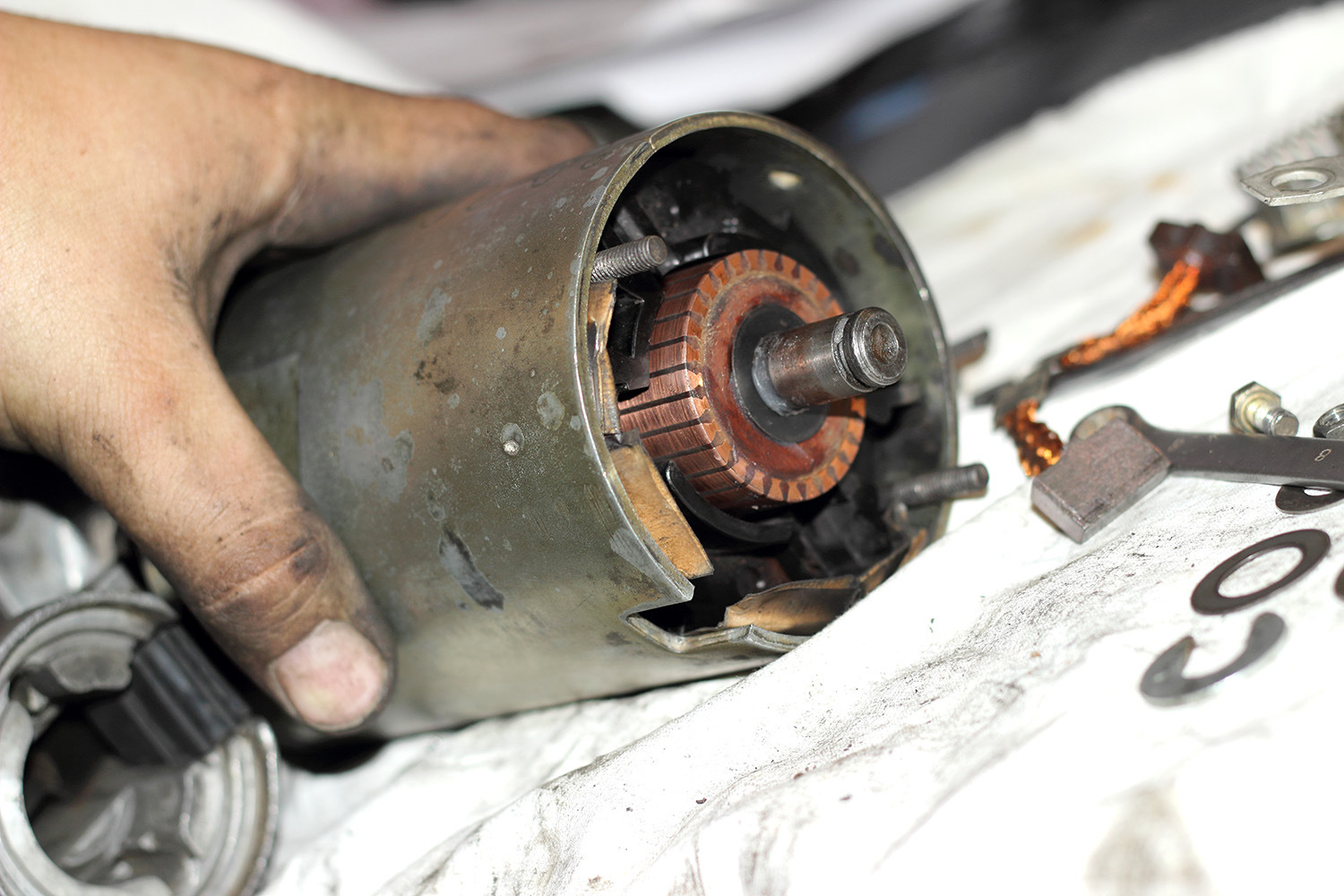 Стартер — это относительно простое устройство, состоящее из электродвигателя и стойки, которая сцепляется с кольцом маховика двигателя, чтобы привести его в движение для запуска. Со временем стартер изнашивается, реже ломается, в результате интенсивного использования.