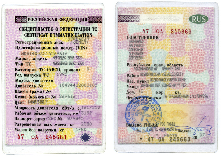 Данные в свидетельстве о регистрации ТС дублируют данные в ПТС (паспорте транспортного средства).