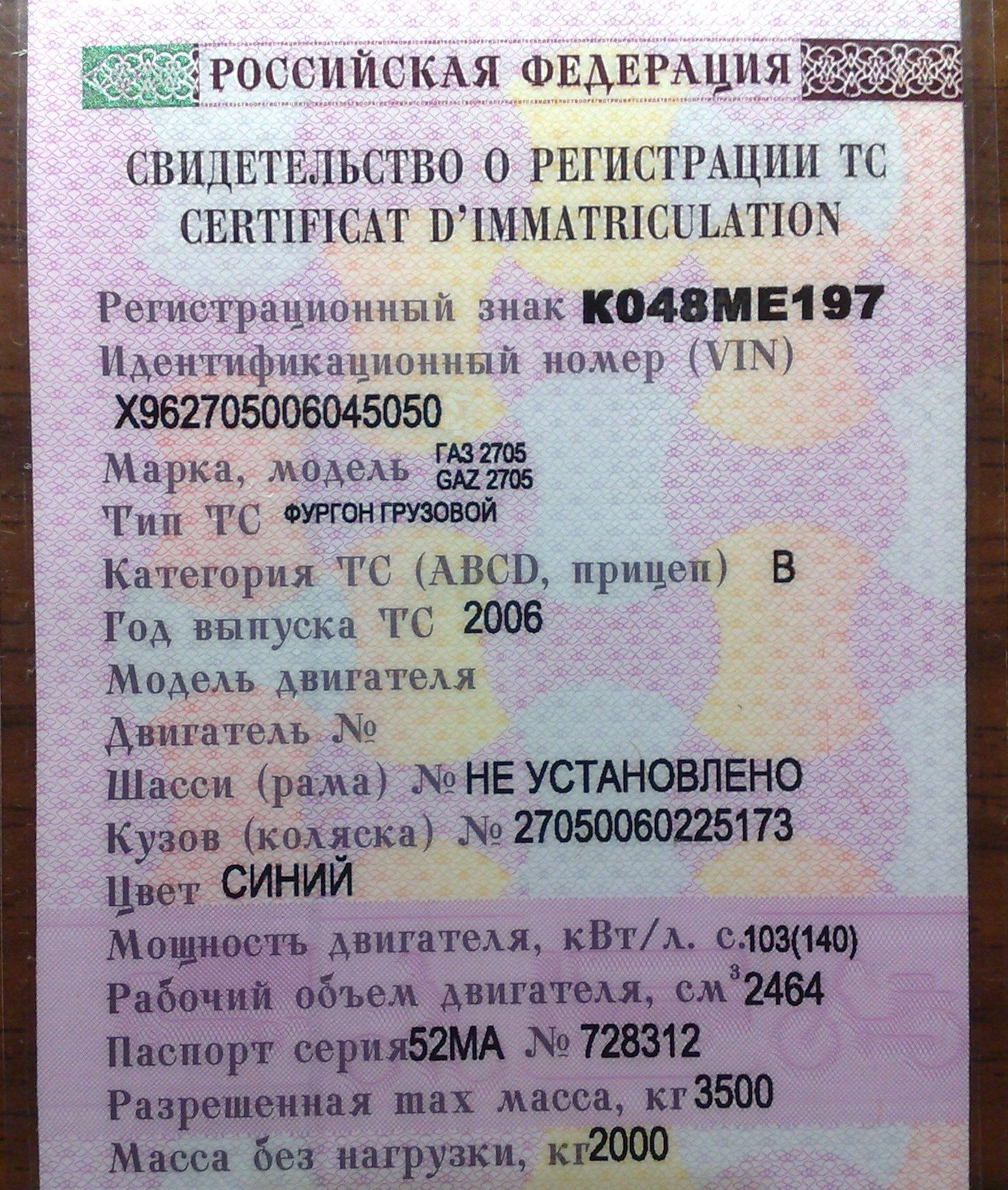 Переоформляла свидетельство о регистрации после изменения фамилии.
