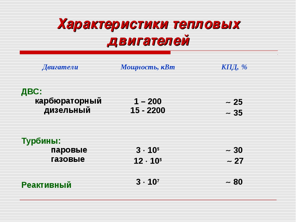 Тепловые двигатели часто работают с КПД от 30% до 50% из-за практических ограничений.Тепловые двигатели не могут достичь 100% теплового КПД ([math] \ eta = 1 [/ math]) согласно Второму закону термодинамики. Это невозможно, потому что в тепловом двигателе всегда вырабатывается некоторое количество отработанного тепла, что показано на рисунке 1 термином [math] Q_L [/ math]. Хотя полная эффективность теплового двигателя невозможна, есть много способов повысить общую эффективность системы.