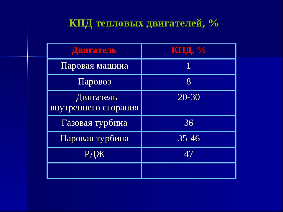 Создания условий для изучения принципа действия тепловых двигателей, ознакомления с КПД тепловых двигателей