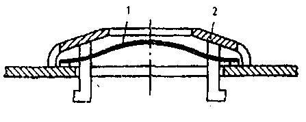 1-отверстие на тарелке; 2-клапан;3-скоба