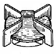 В отечественной практике широко применяют прямоточные тарелки с дисковыми клапанами [4,10,12]. Клапан такой конструкции (рисунок 3.25) имеет три направляющие, расположенные в плане под углом 120о , две из которых имеют большие вес и длину. При работе с возрастающей скоростью паров сначала поднимается легкая часть клапана, обращенная против потока жидкости, а затем клапан принимает положение, при котором пары выходят в направлении движения жидкости. Короткая ножка клапана расположена в вырезе на кромке отверстия полотна тарелки, что обеспечивает заданное положение клапана в плане при его подъеме.