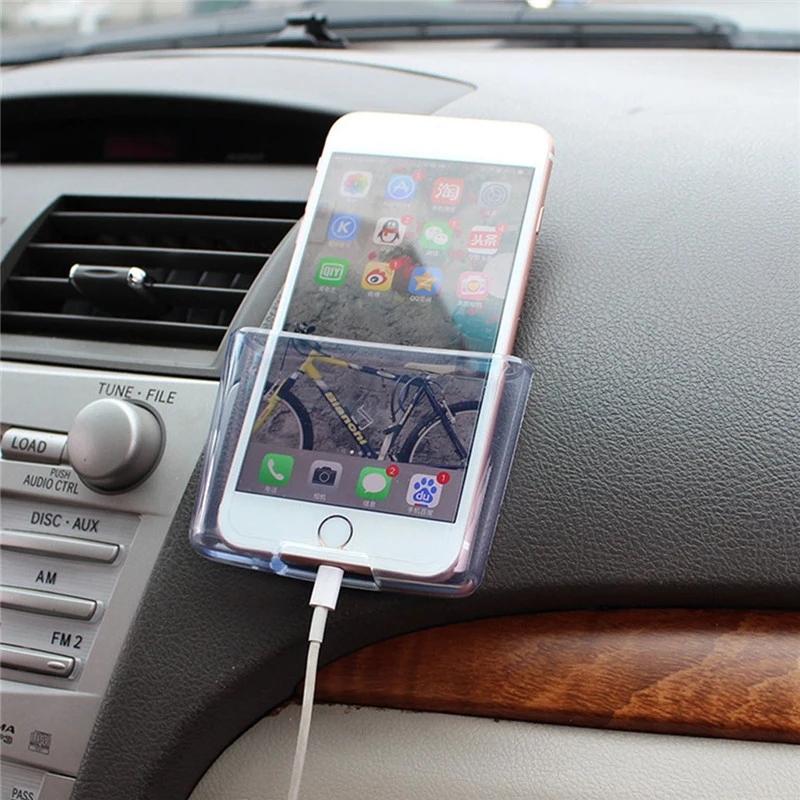 Самоклеящейся или на липкой ленте — маленький и аккуратный держатель. Штатив устанавливается на панели за счёт липкости. Магнитный вариант состоит из двух магнитов (первый установлен на держателе, а второй вы крепите на мобильный телефон). На механическом, гравитационном и сенсорном предусмотрена подставка для телефона. Преимущество в том, что его можно установить в любой части вашей торпеды. Он малогабаритный и не заметный под смартфоном. Недочет стойки — не всегда хорошо удерживается на панели автомобиля. Одноразовая клейкая система из-за которой вы не сможете многоразово переустанавливать его в разные части своей машины.