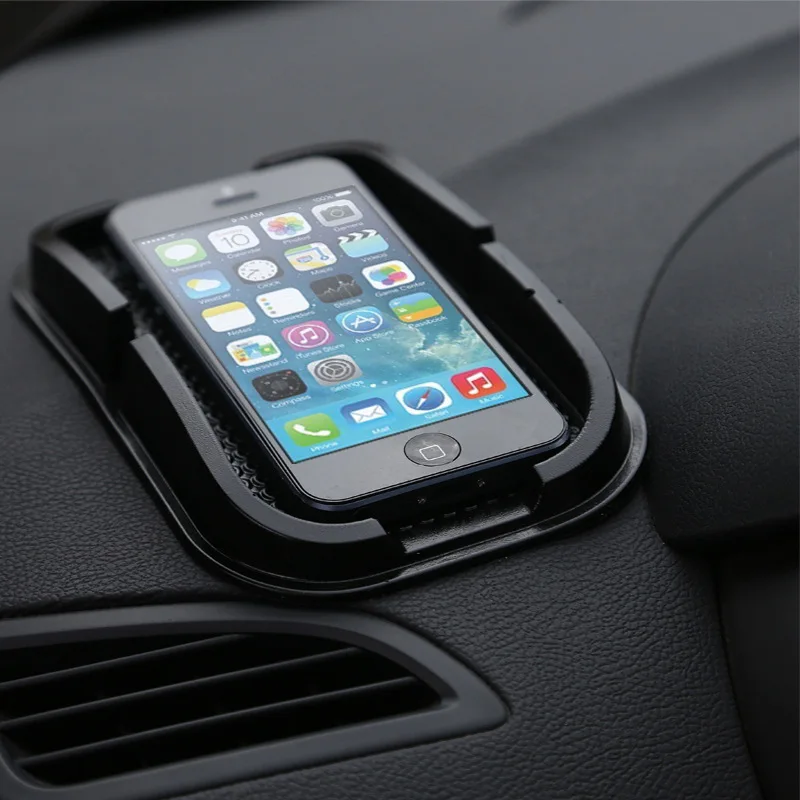 Благодаря такому покрытию ваш сотовый и будет держаться. Плюс в том, что коврик недорогой и универсальный в размере. Отрицательной характеристикой является то, что ваш смартфон будет только лежать и вы не сможете использовать его как навигатор, чтобы подсмотреть. Существует проблема в не надёжной фиксации.
