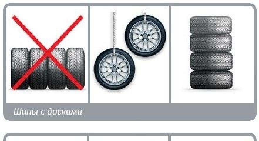 - Нельзя допускать, чтобы резина без дисков хранилась в не правильном положении.