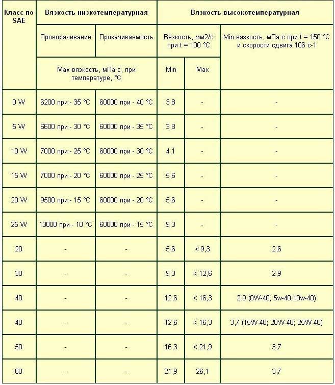 Представители американской ассоциации автомобильных инженеров (SAE) предложили систематизировать показатели в виде таблицы. Итак, таблица вязкости масла показывает характеристики любого вещества при разных показателях градуса. При таких показателях, работа мотора считается безопасной. Всё, что выходит за пределы, не подлежит гарантии.