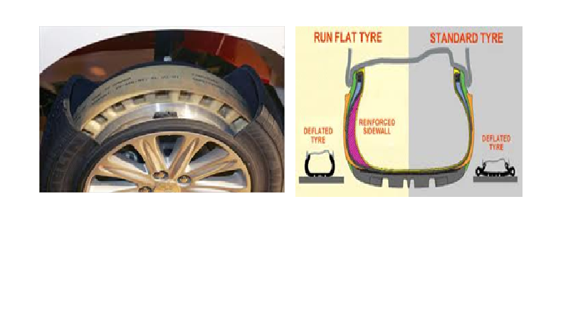 Технология RunFlat характеризуется усиленными боковинами. В обычных шинах после повреждения поверхности обод сразу опускается к уровню асфальта, за счёт чего движение становится невозможным. В случае покрышек RunFlat после прокола они не слетают с диска, поэтому водитель может в безопасности доехать до пункта сервисного ремонта. Также одним из вариантов является монтирование в колёса полиуретановых колец, которые увеличивают стабильность поездки.