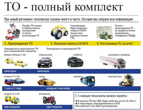 Это относится также к возрасту и статусу автомобильных средств, которым нужно техническое освидетельствования.