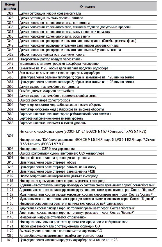 | Код EOBD | Тип ошибки |