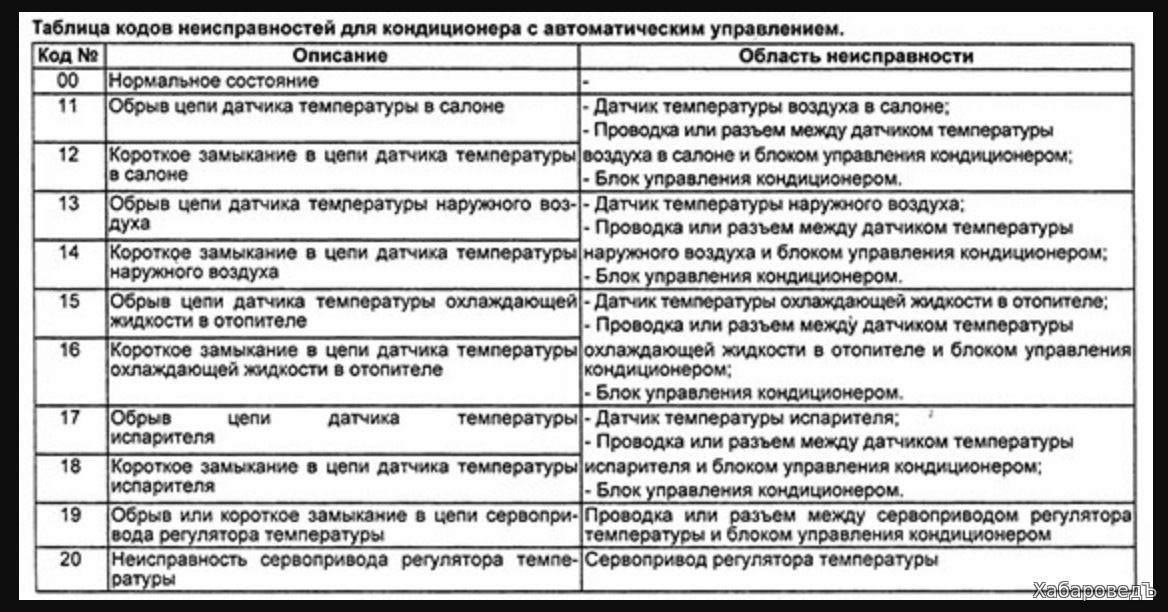 | 01 | Общая электрическая неисправность |