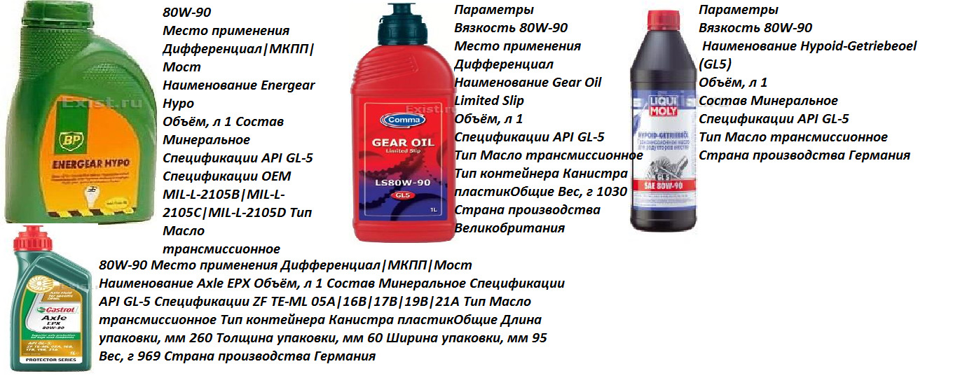 - Главная передача: В зависимости от модели API GL5, SAE 80W-90, 80W, 90