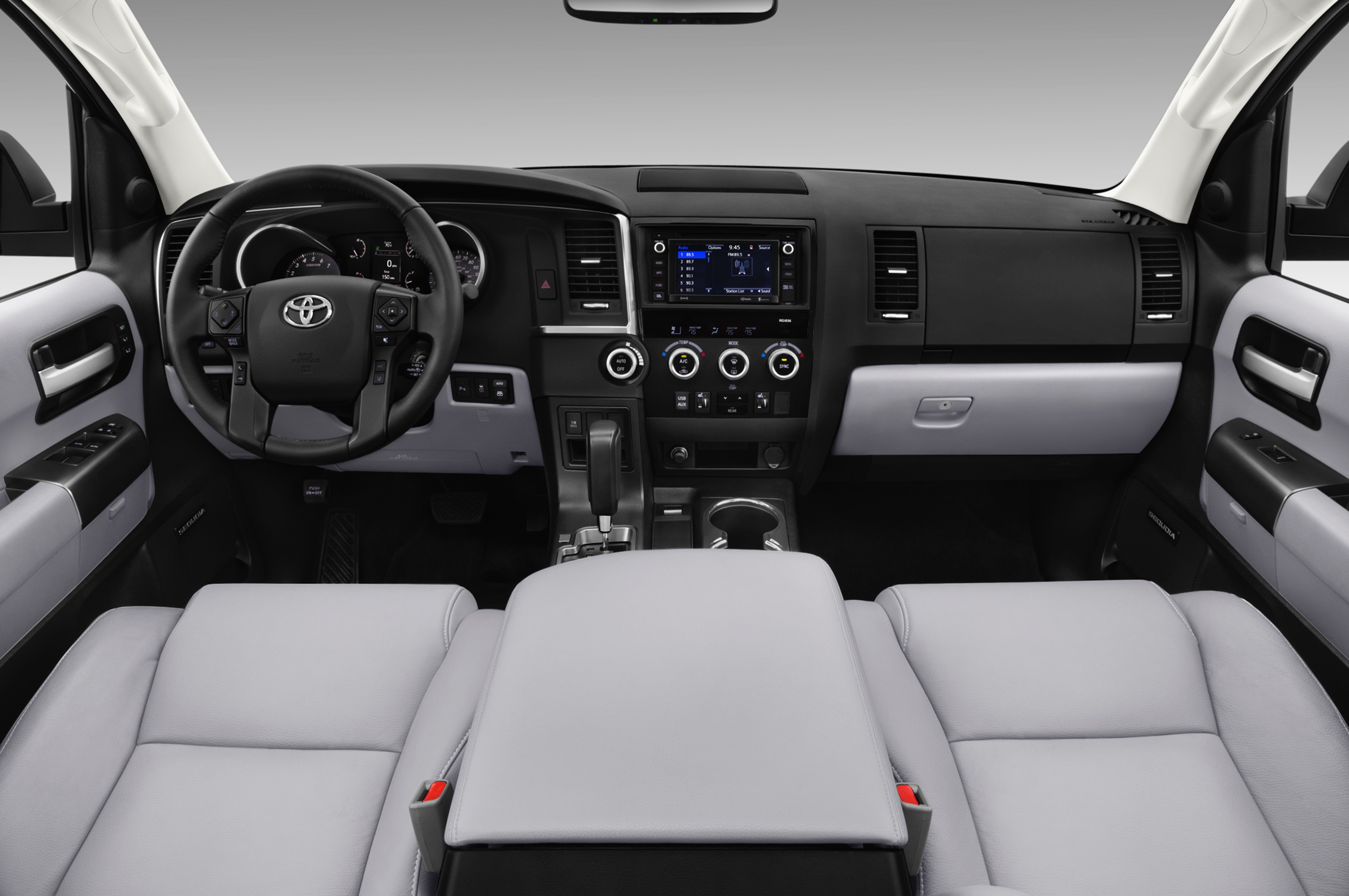 Внутри столь необходимые обновления устаревшей приборной панели Sequoia включают новую группу датчиков с измененным мультиинформационным дисплеем. Центральная консоль тоже новая для всех фанатиков закрытых хранилищ.